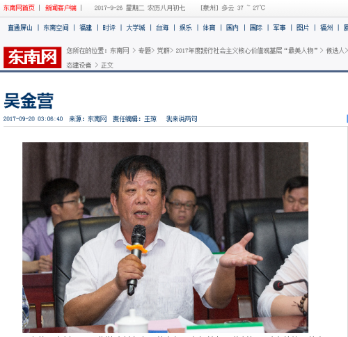 • 【东南网】福建省最美生态建设者候选人:吴金营主要事迹