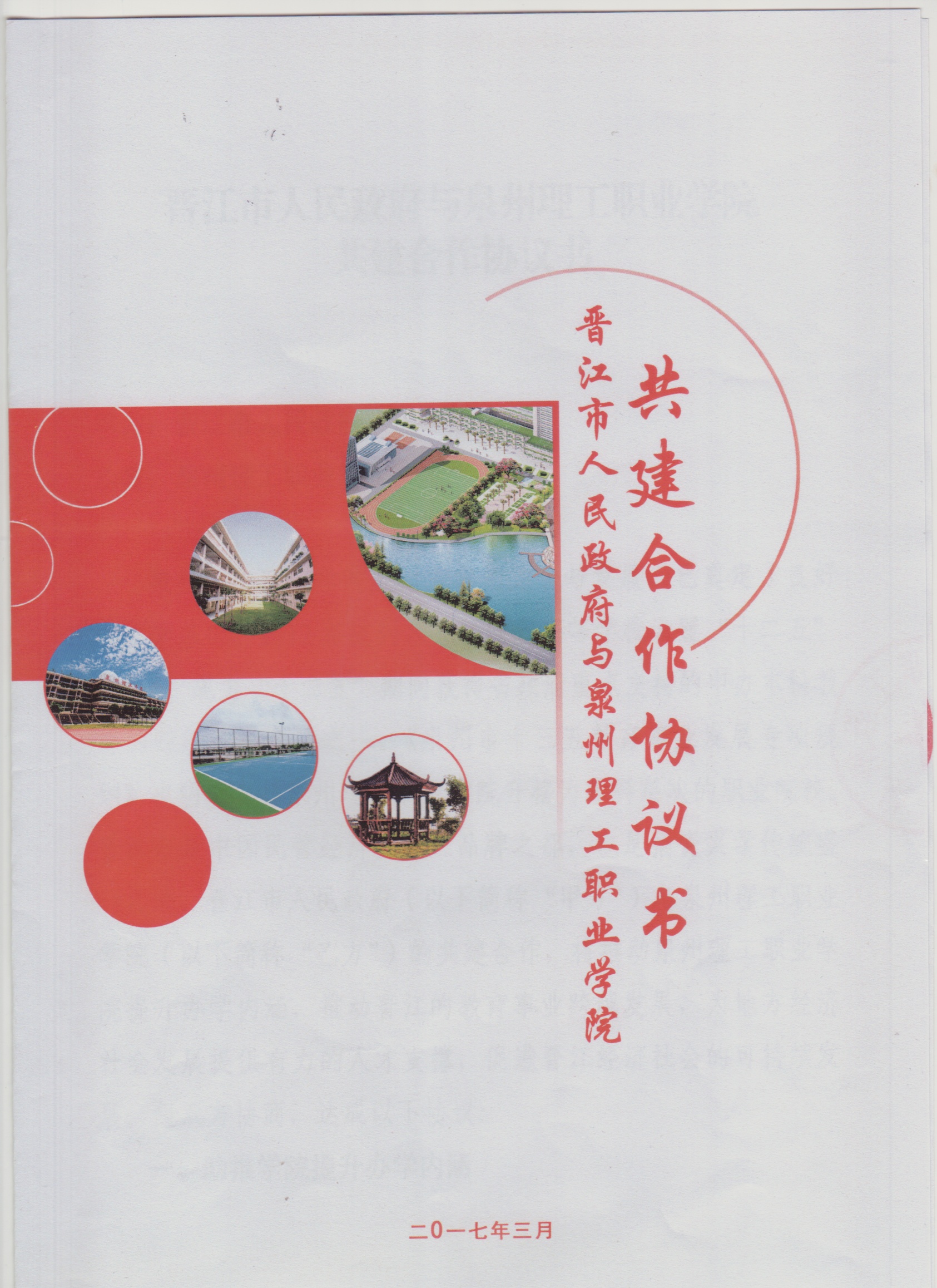 协议书 泉州理工学院 泉州理工学院鸟瞰图 晋江市人民政府与泉州理工职业学院签署市、校共建合作协议。着力推动泉州理工职业学院提升办学内涵,推动晋江市的教育事业跨越发展,为地方经济社...