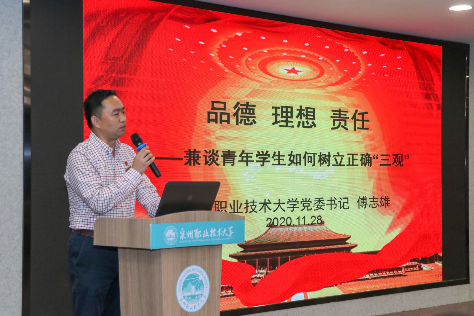 12月3日上午,学习贯彻党的十九届五中全会精神省委宣讲团报告会举行,省委宣讲团成员、省委教育工委书记、省教育厅厅长林和平作宣讲报告,全省各地市和高校组织收听收看。我校设立分会场,校长、党委副书记吴滨如,党...