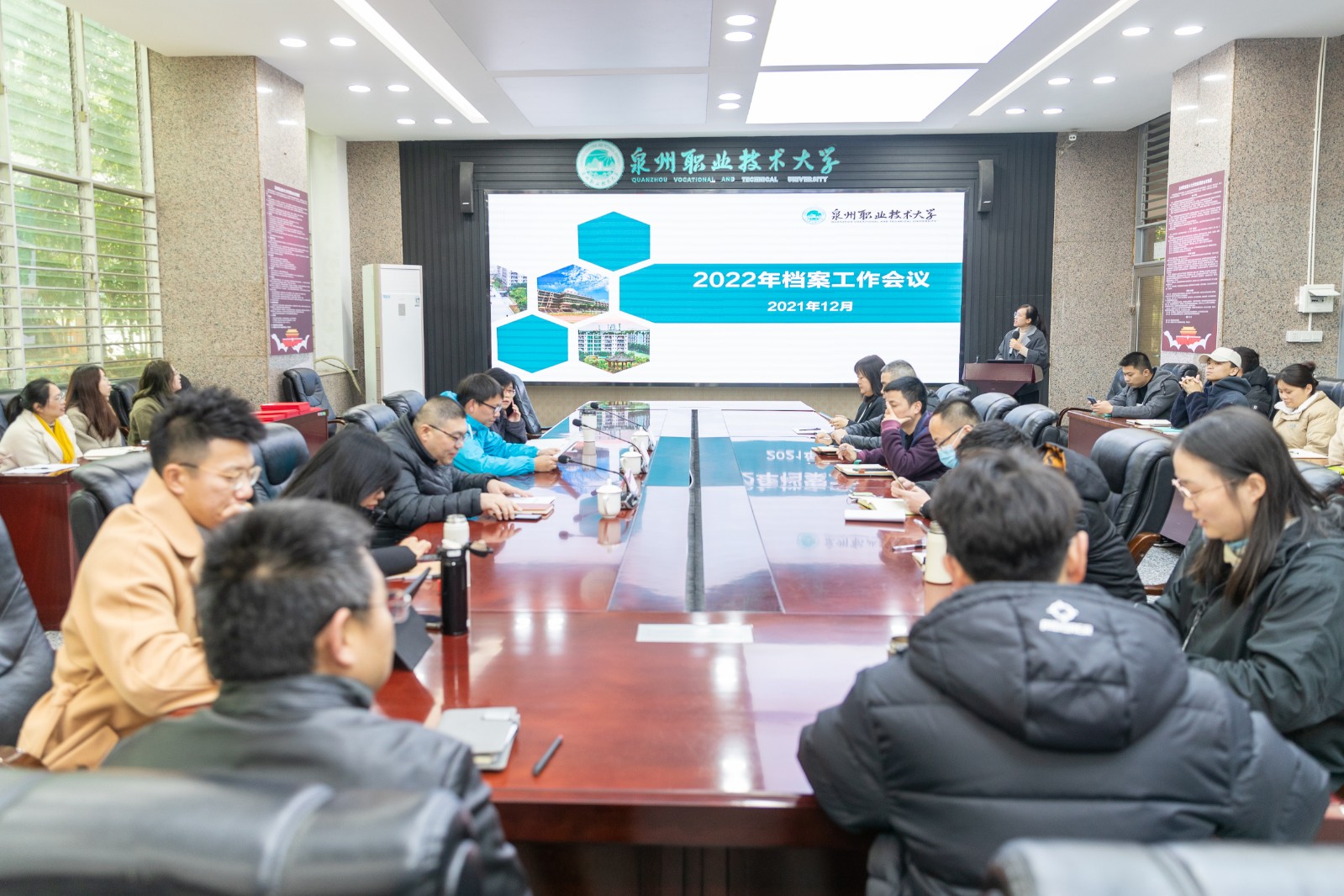 12月27日下午,一年一度的档案工作会议在第一会议室召开。副校长林文艺、党委委员/丰泽书院书记杨津平、校长助理苏康敏,学校相关职能部门负责人以及全体兼职档案员参加会议。会议由图书档案馆副馆长郑春梅主持。 ...