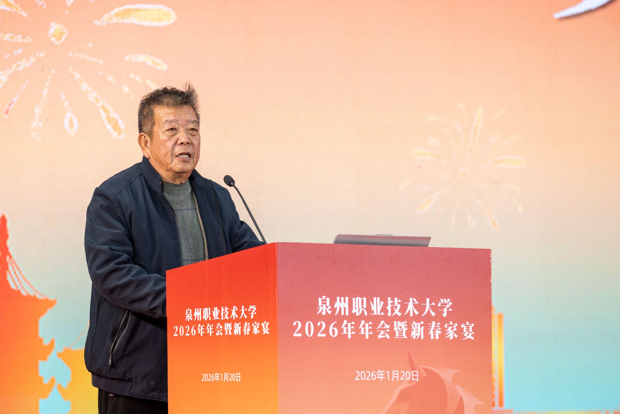1月20日,泉州职业技术大学隆重举行2026年会。学校创办人、董事长吴金营,泉大教育基金会理事长杨培琛,校长吴滨如,党委书记傅志雄,全体校领导、教职工及产业伙伴代表、南非培训学员参加。年会由傅志雄书记主持。年会主旨报告环节特邀福建省教育厅原副厅长(正厅长级)、福建省政协教科卫体委员会副主任刘健教授作题为《教育强国建设背景下高职院校高质量发展思考》的报告。刘健农学博士,博士后,教授,博士生导师,享受国务...