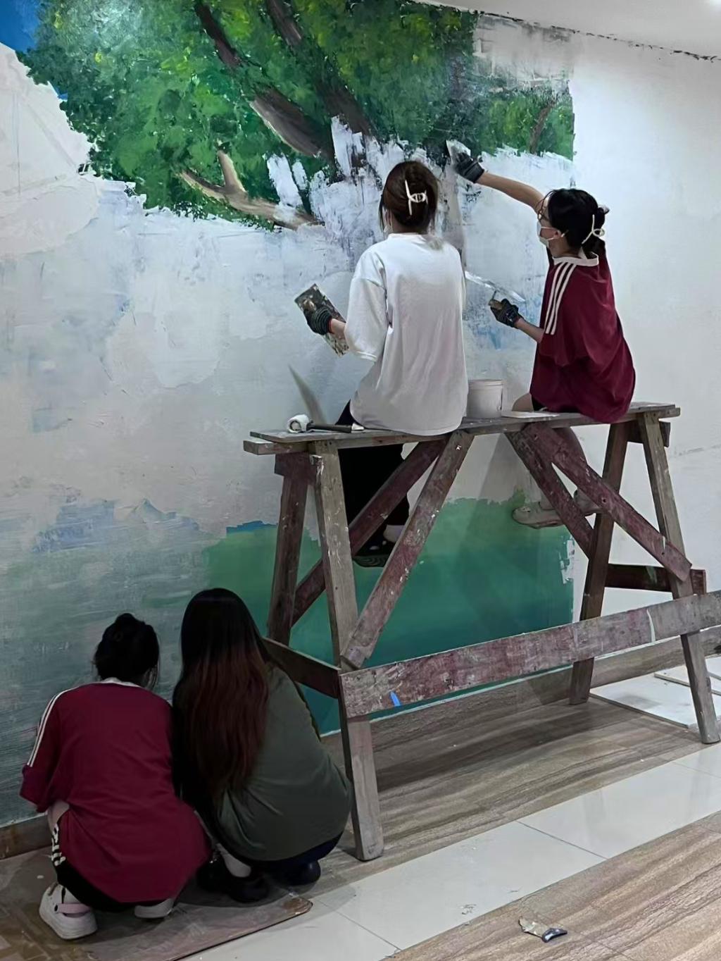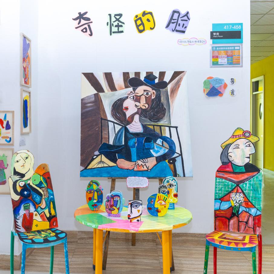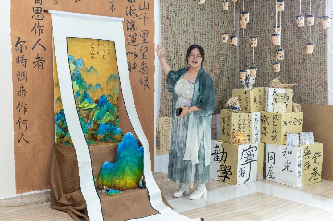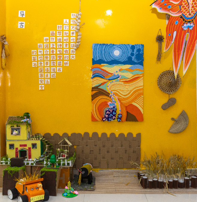 教育学院学前教育专业的同学作为参赛选手,以《3-6岁儿童学习与发展指南》为指引,将蒙台梭利“有准备的环境”、瑞吉欧“第三位老师”等国际前沿教育理念融入创作,让墙面变身会“说话”的教育场域,为大家呈现了一场“环境即课程”的沉浸式体验。