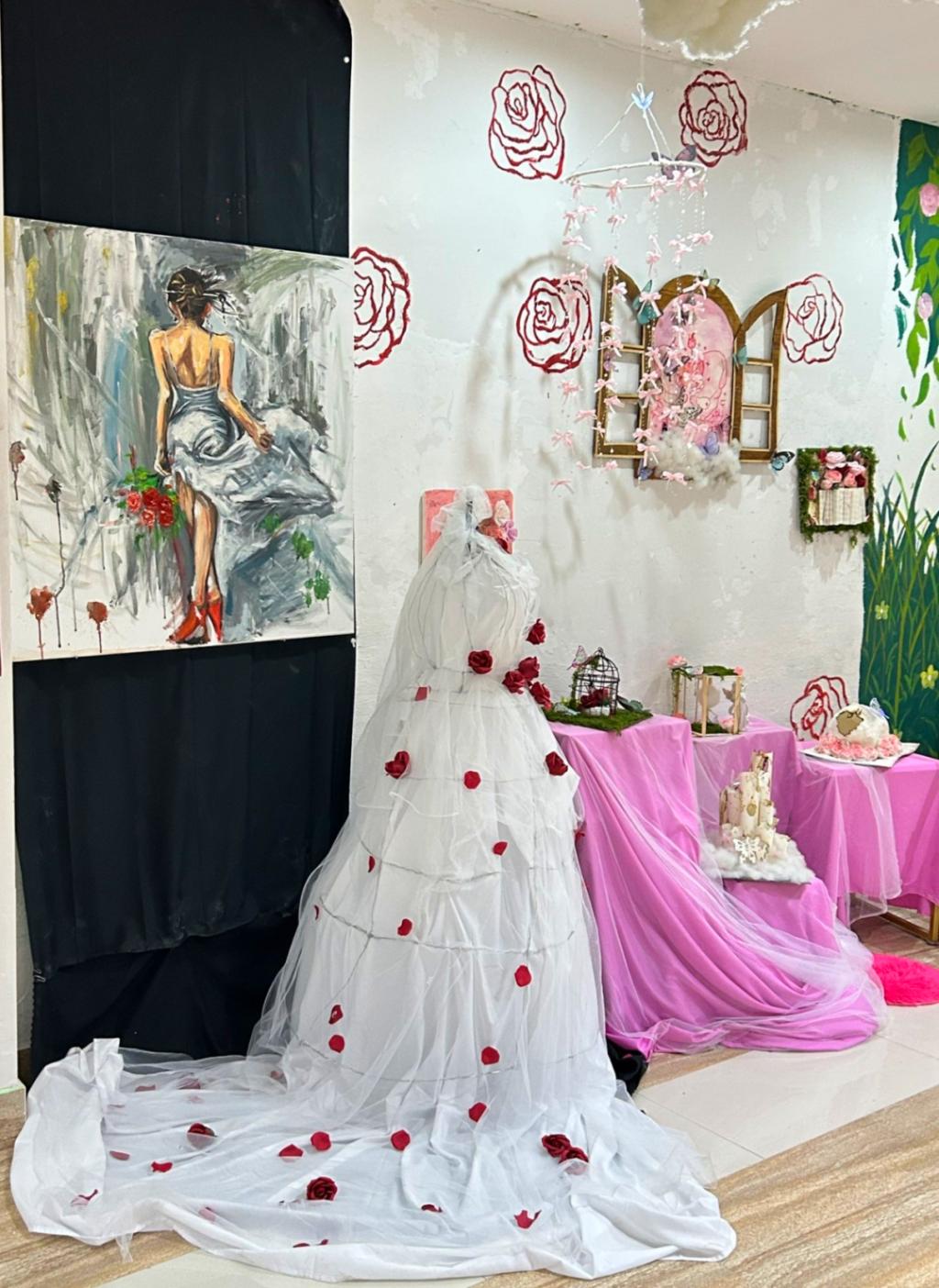 比赛限定每支参赛团队200元的创想基金,选手们化身“创意理财师”,在废旧织物、再生木料、自然枯枝、工业边角料等材料中挖掘无限可能。有的用蛋糕盘制作蛇年主题装置,有的将废旧报纸拼贴成女性裙摆……
