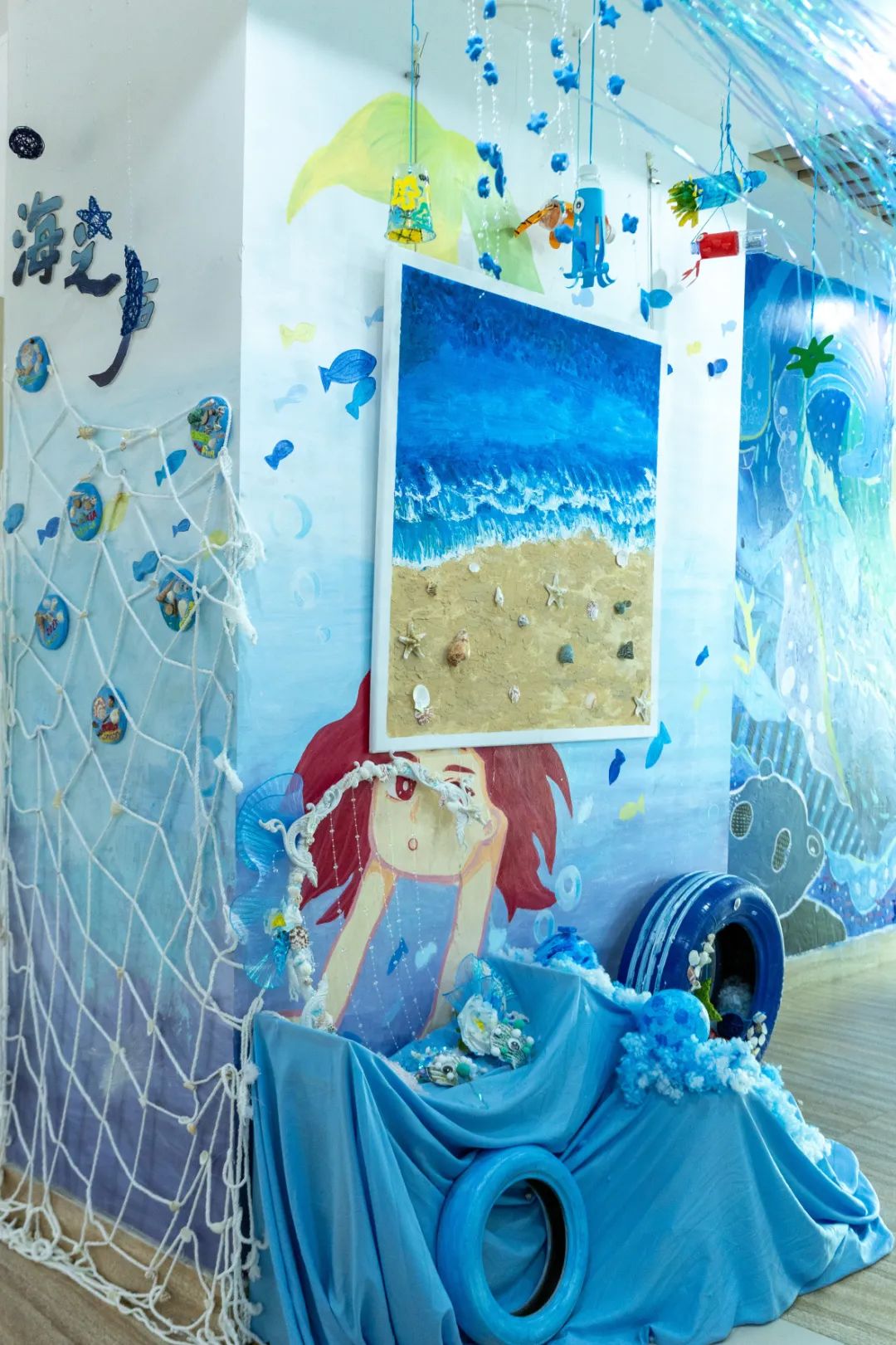 这场持续10天的展览吸引了千余名幼儿园教师、家长和师生参观。一位带着孩子观展的家长感慨:“原来墙面不只是装饰,还能讲故事、教知识。”而参展学生更在实践中完成了职业认知的蜕变,《生命之源泉》团队成员陈晓慧说:“当我们用废旧纸张制作海洋波纹时,突然明白‘环境创设’不是简单的美化,而是要让每个元素都蕴含教育意图。”