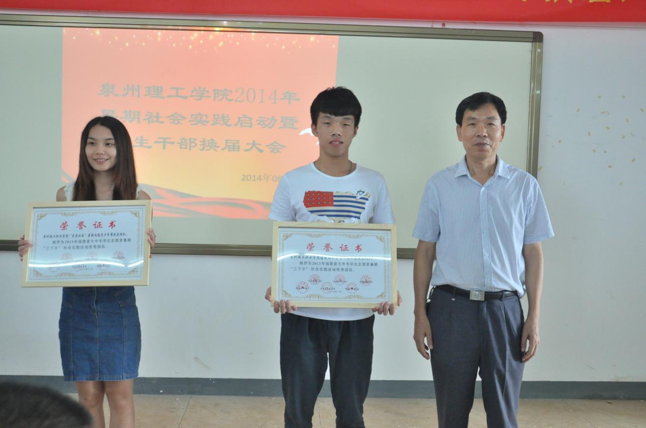 当天活动上还对获得2013年福建省暑期社会实践优秀团队和个人以及2013-2014年度校级五四表彰的集体和个人颁奖。
