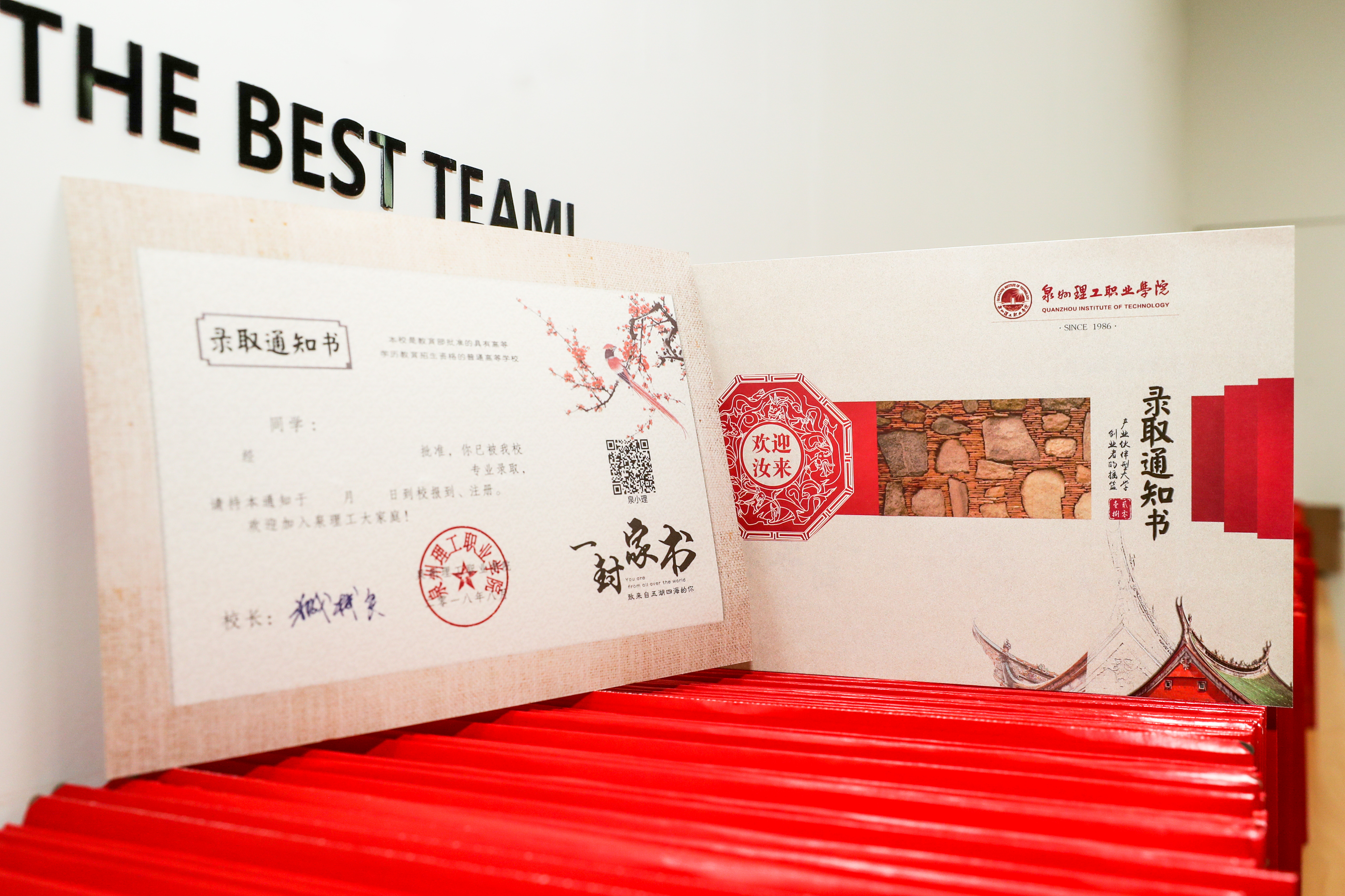 本次录取通知书以闽南元素为设计题材,今年是改革开放四十周年,践行“晋江经验”十五周年,所用元素皆源自于晋江本土文化。欢迎汝(Li)来:这是一句地道的闽南方言,我们热情好客,海纳百川,欢迎全国各地的学子成为新理工人。