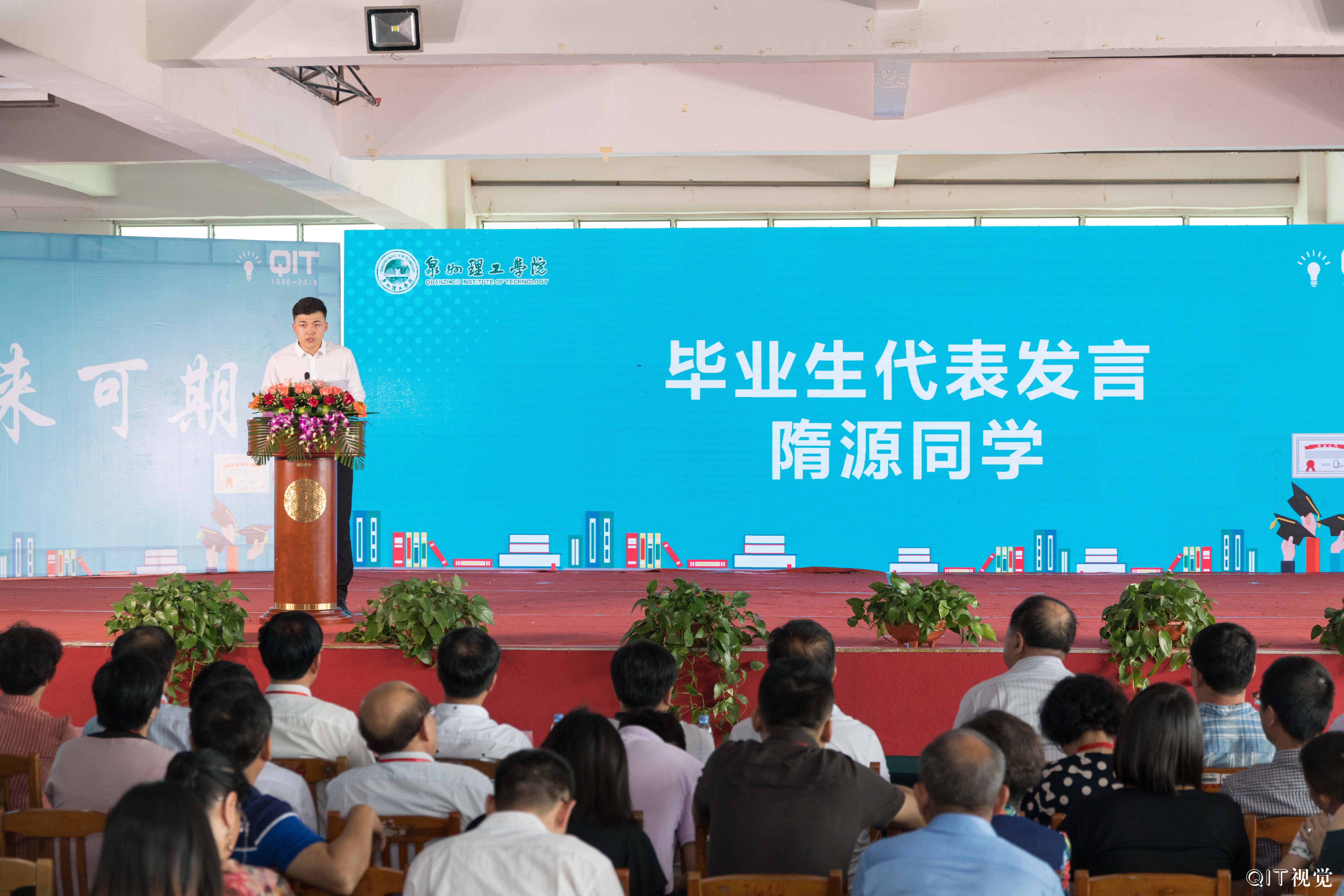 9日下午,泉州理工在西教小礼堂隆重举行2018毕业典礼,董事长吴金营、校长臧树良、书记林其天、名誉校长苏志明、副校长吴滨如、副校长于雷、副校长庄文端等校领导以及各院系、部门相关负责人、教职工、2018届全体毕业生参加典礼。出席典礼的嘉宾有泉州市高教办主任陈志刚、内坑镇政府副镇长张辉永、内坑派出所副所长张谋泽、创业者协会代表吕谊阳、杨江鸿、陈连套、校友代表黄腾蛟等人。典礼由校长助理郭霏霏主持。