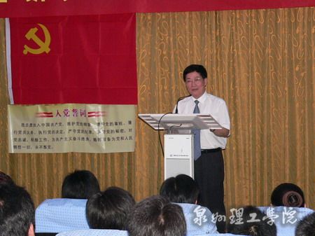 大会在激昂雄壮的国际歌中拉开帷幕,85名新党员面对鲜红的党旗进行了庄严宣誓。新党员教师代表杨永华和学生代表吴燕红分别在会上作了发言,表达了为共产主义事业奋斗终身的信心和决心,并决心用党员的标准严格要求自己,在今后的工作岗位上做出应有的贡献;院长苏志明同志作为老党员代表向新党员表示了衷心的祝贺,并提出要求,希望他们不断加强理论修养、坚定理想信念,在今后的学习、工作和生活中起到表率作用;院党委书记吴金营同志在讲话中强调,作为一名新党员,不仅要从组织上入党,更重要的是要从思想上、行动上入党,希望到会的党员同志们要牢记入党誓言,认真履行党员义务,在今后的工作生活中不辜负党的期望,无愧于共产党员的称号,为祖国建设做出自己的贡献。