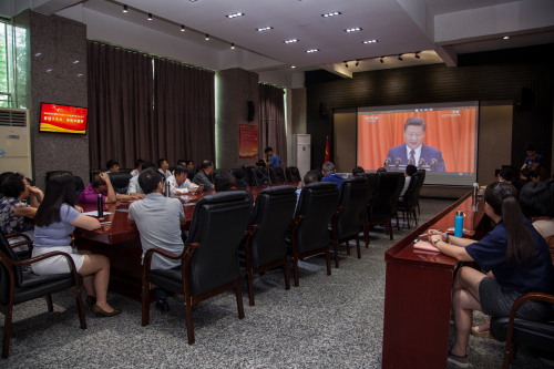 上午9时,学校全体党政领导、党务干部,以及部分入党积极分子、学生干部代表在主楼第一会议室认真观看现场盛况直播,仔细聆听习近平总书记作报告。各基层党组织分别组织本单位广大党员干部、师生员工收看。大家全神贯注、聚精会神地认真聆听。