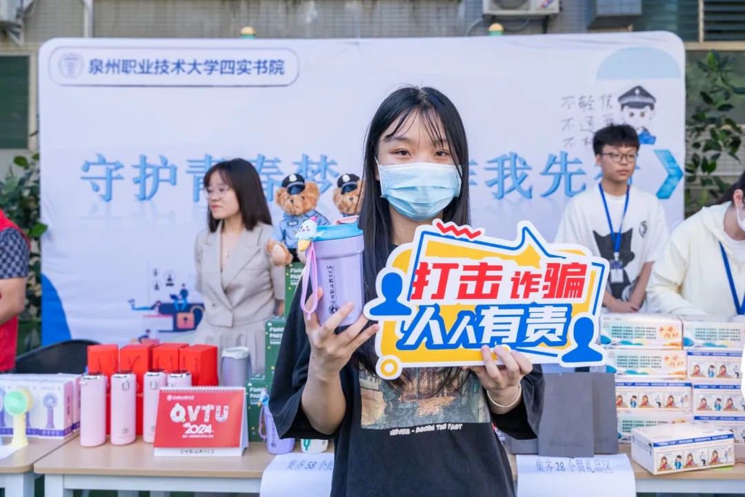为增强在校师生的防诈意识,向大家普及关键的防诈骗知识与技巧,提高全校师生的防骗能力,泉州职业技术大学四实书院携手晋江市公安局内坑派出所、晋江市内坑镇综治中心,共同举办“守护青春梦,反诈我先行”主题反诈宣传活动。