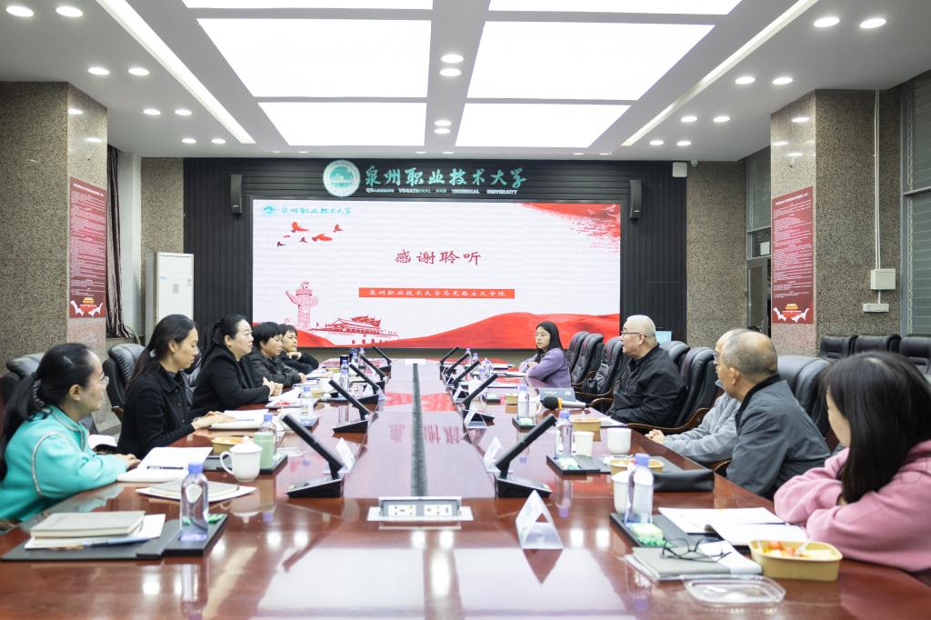 丁丽仙一行参观双馨书院、拾德书院后与我校学工、思政工作人员进行座谈。双馨书院党总支书记兼院务主任罗永珍详细介绍了双院制学生管理模式创新的实践。瑞丽市职业中学专职副书记余博表示,泉大双院制学生管理模式具有创新性和实效性,很值得学习。此外,马克思主义学院党支部书记陈荣惠作创新思政课立德树人新模式交流报告,详细介绍我校思政课的创新模式。