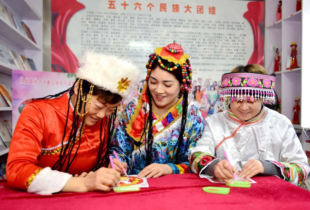 ▲2022年12月25日,安徽省合肥市庐阳区杏花村街道社工站联合志愿者在灵璧路社区开展“民族团结一家亲,亲子手工迎新春”活动,邀请辖区壮族、苗族、藏族等少数民族家庭与社区居民一起制作新年饰品,共迎新春的到来。