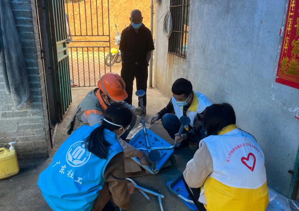 ▲自2021年1月起,广东省湛江市吴川市梅菉街道社工站启动长者居家安全改造项目,并组建了“家安全改造”志愿服务队,为困难老年人、残障人士进行居家安全改造。图为社工与志愿者、专业师傅下户进行改造。