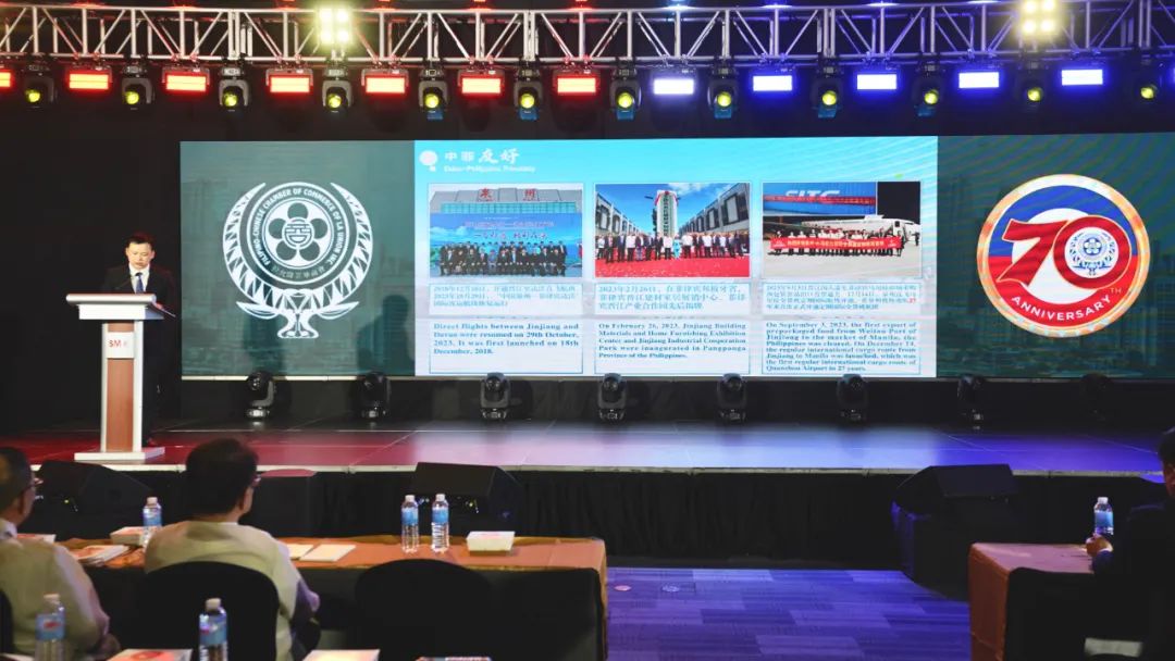 在菲华商联总会成立七十周年庆典活动上,晋江市举办招商暨文旅推介会,为菲华商联总会、菲律宾晋江同乡总会等近千名侨亲,介绍晋江的产业方向、营商环境、城市品质、文化旅游、招商载体等情况,分享家乡新一轮发展机遇。