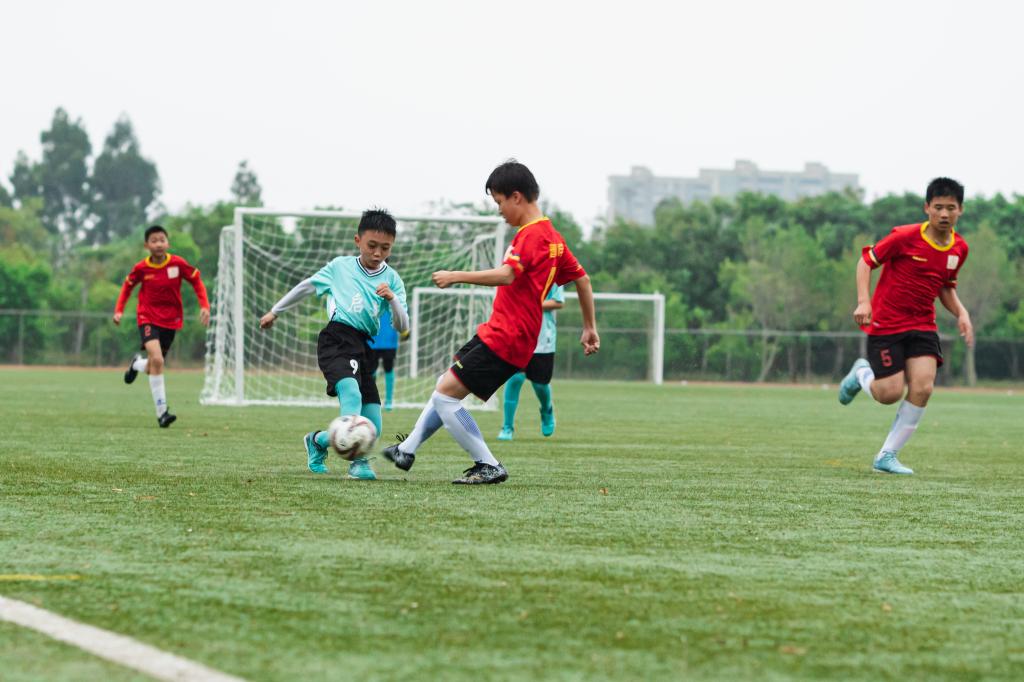 比赛遇上梅雨季,天气闷热又潮湿,却依然阻挡不了足球小将们高涨的热情。比赛从一开始就非常激烈,对手间无论是抢球、传踢都精彩纷呈。队员们的加油和叫好声,点燃热烈的现场气氛。
