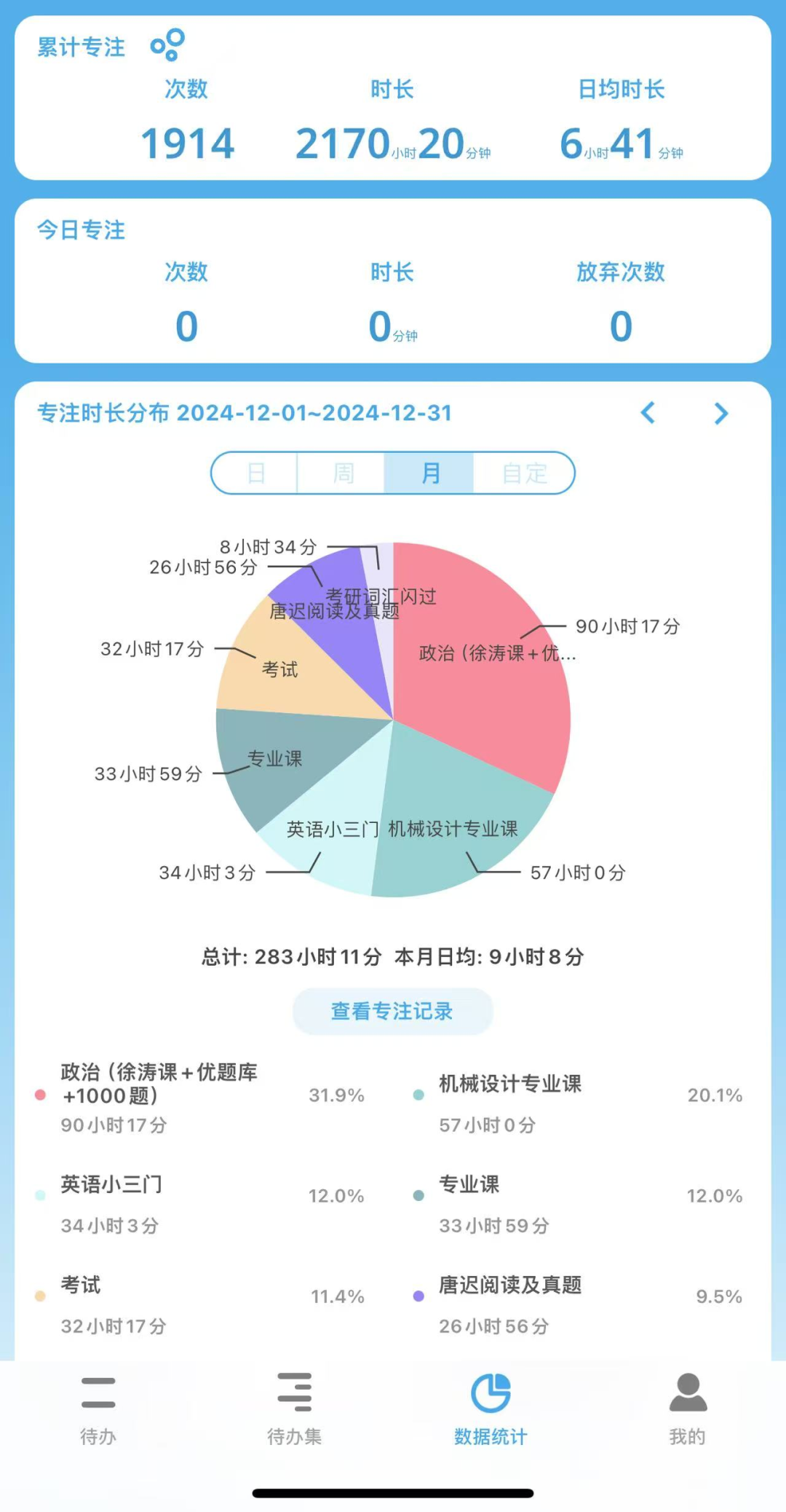 大一、大二时,叶蔚锴专心致志学好专业课,大三那年12月,他开始紧张有序的考研备考。他每天早起晚睡,利用番茄计时软件精准规划时间,确保能充分利用每分每秒。