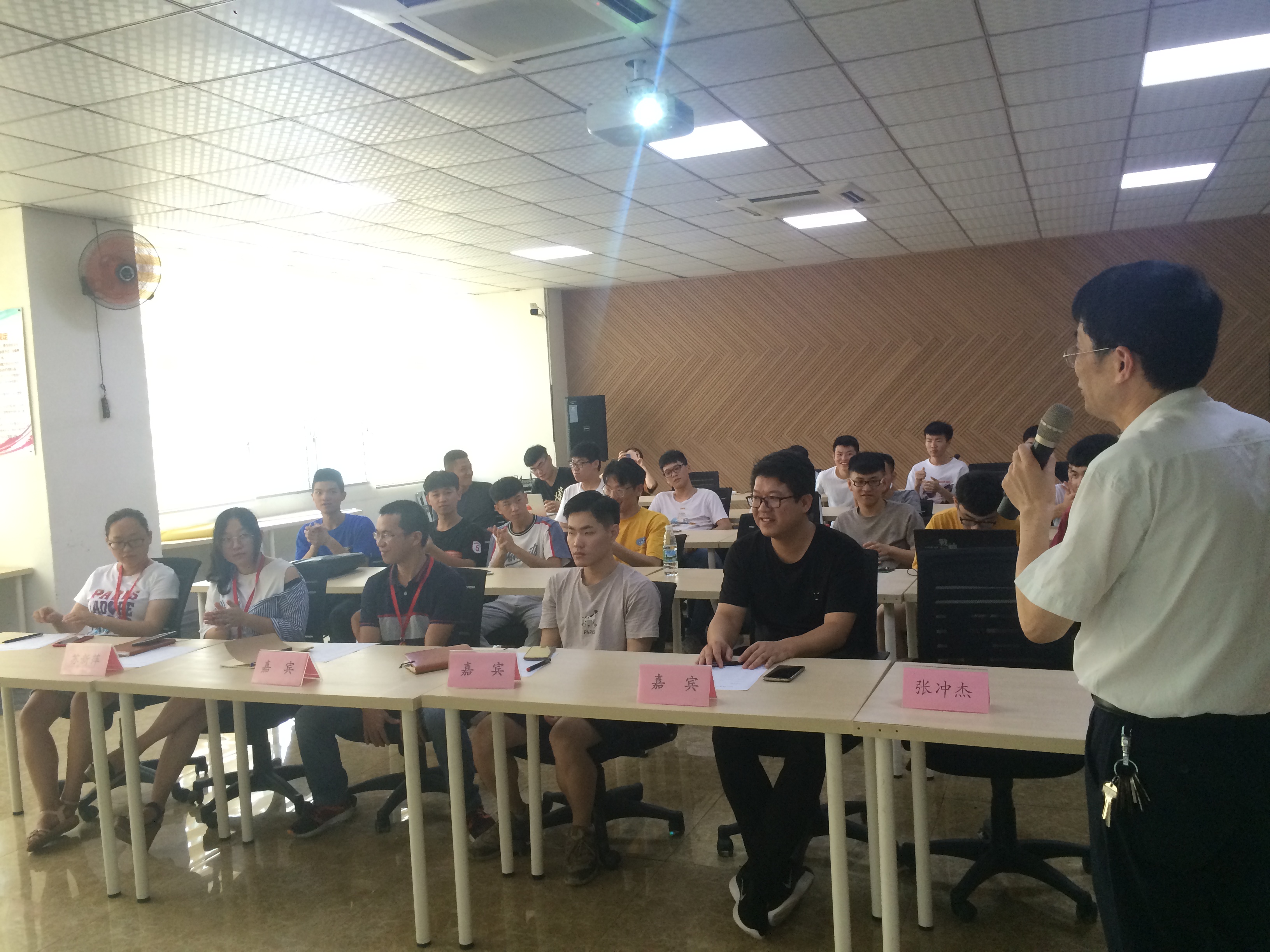 6月29日上午,我系电子信息工程技术专业在校主楼第二会议室举行17级电子信息实训成果汇报会。会议邀请了科研处郭霏霏老师、教务处许亿老师、工学院张水参老师,及电子信息专业王燕平老师,苏新萍辅导员等担任评委,会议由电子专业主任王志明老师主持,17级电子信息工程技术专业全体学生参加了本次活动。
