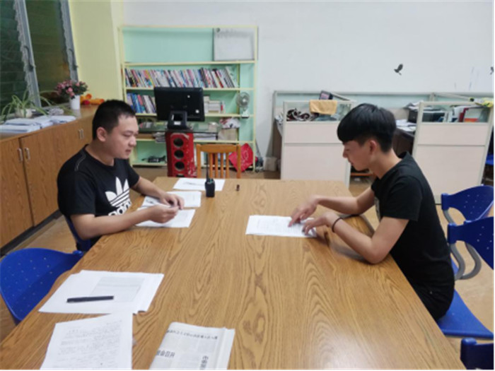 通过笔试考核的学生要参加第三轮考核,第三轮考核方式为面试。第三轮考核,实验班总负责人李秀全高级技师亲自坐镇面试,陈辉老师和吴俊杰老师负责协助面试。