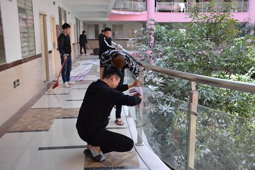 泉州理工学院为美化社区环境,对楼层进行粉刷工作。在工期结束,双馨书院的同学在323日中午利用午休时间对双馨书院的走廊、扶手、周边环境以及宿舍卫生进行全面的清洗。太阳光洒在我们的书院粉色的墙体上,书院显得格外温馨!