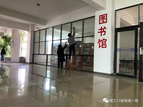 12018年度的校历下学期第二周,17电子商务1班为让在校同学们有个更好,更舒适的学习环境,他们在课余时间对图书馆进行了打扫和整理和将部分教室增添了新的桌椅并且还修补了值周旗,为了它能更好完成我们的主人周的接力。
