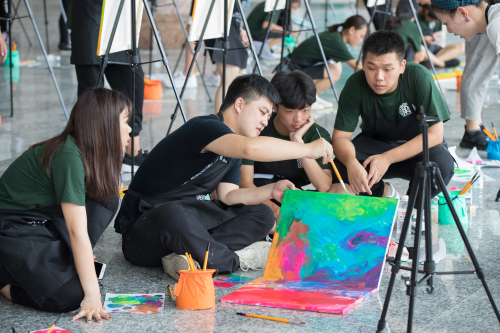 924日,今年新设立的络缇时尚学院举行了一场以“年轻 活力 色彩”为主题的百人绘画拼图。该活动负责人表示,“百人拼画”由108幅作品组成,学院所有学生都参与其中。通过这种方式将所有人汇聚,每人都在空白画板上留下浓重的一笔,希望学生能将画板中的色彩与生机无限延续,在时尚的道路上,一路前行。