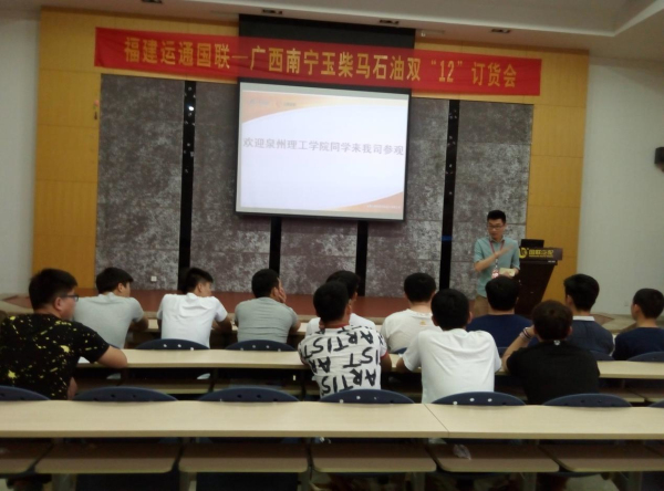 随后大家移步会议室,我校 08 级毕业生,现任仓储部的部长为大家介绍运通国联的基本情况及公司员工的薪资福利。他说,公司的领导很喜欢理工的学生,能吃苦,不怕累,能脚踏实地的完成工作,公司非常欢迎同学们到公司实习工作。同学们也表现出了很大的兴趣,当场就表示愿意参加公司的面试。