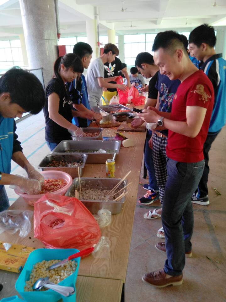 座谈会上,钱处长带领着各宿舍长开展了包花样饺子大赛,叶静老师与王秋玲老师则带同学们制作蛋糕和漳州特色小吃“五香卷”。
