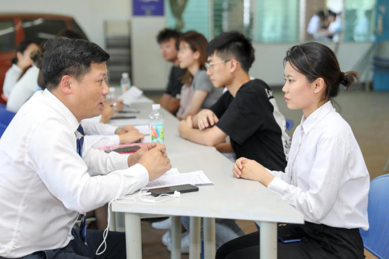 宣讲会结束后,来自于建发汽车的12位职业经理人分成两组与学生进行面对面交流,通过一个下午的紧张面试,企业与学生达成初步意向,本次双选会也圆满结束。