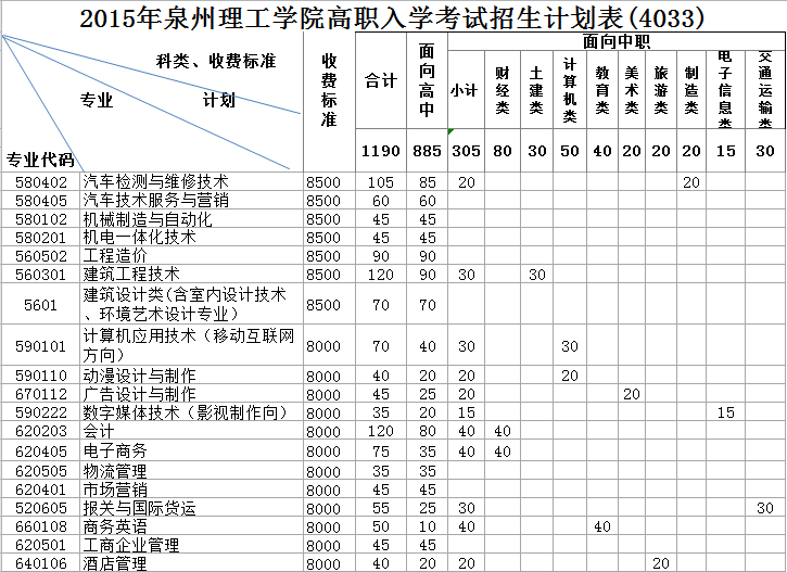 第七条 2015年高职招考招生计划