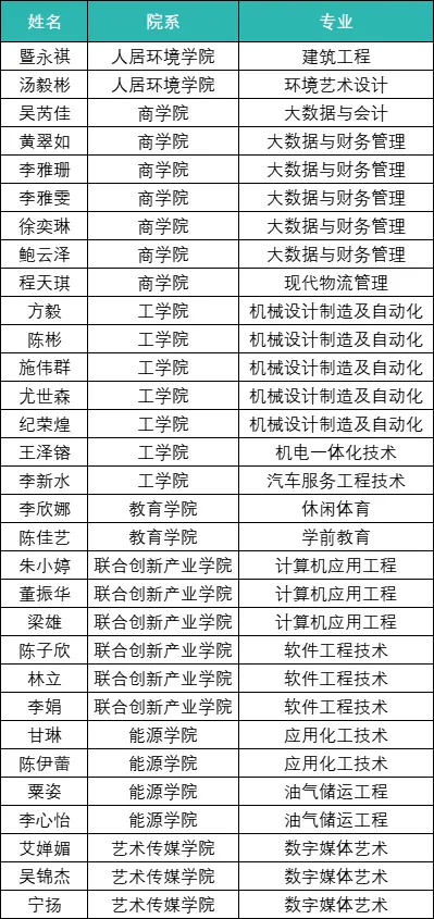 国家奖学金获奖者名单